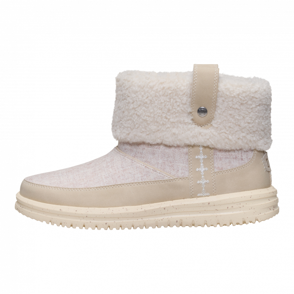 Váš dokonalý společník do chladných dnů, Camden Cuff Wool Cozy, je ztělesněním pohodlí jako v posteli. Snadno se nazouvají hned po probuzení, tyto boty mají hřejivý vlněný svršek a plyšovou sherpa podšívku, která vás udrží v teple. Noste je na zimní procházky, slavnostní akce a výlety na bruslení.