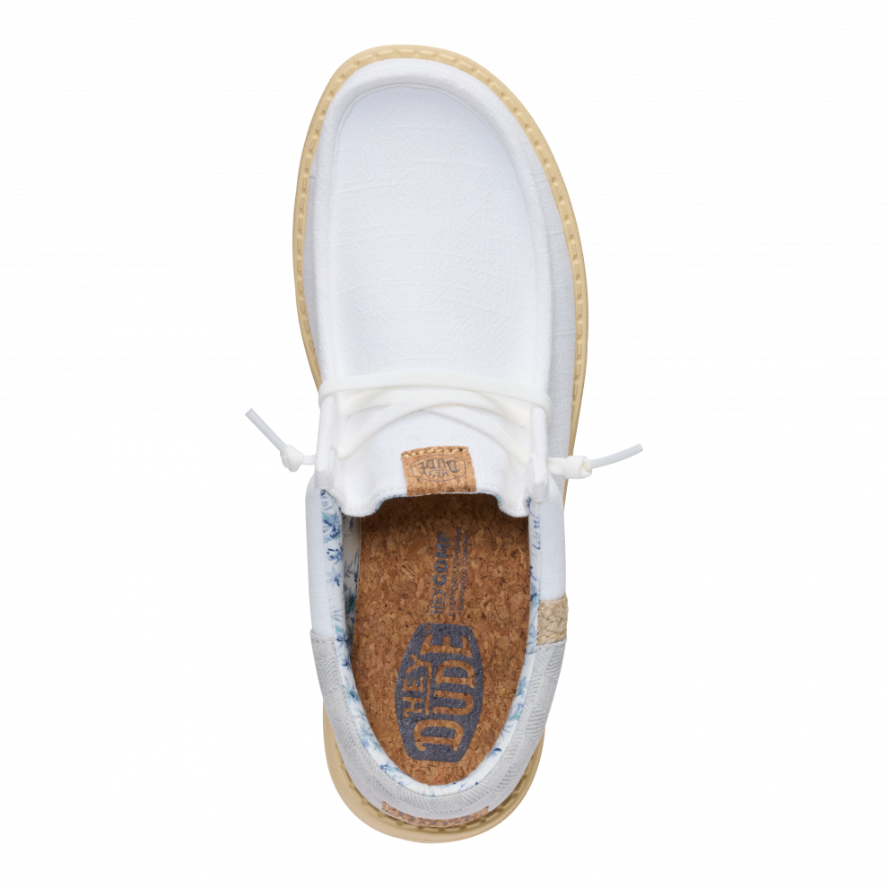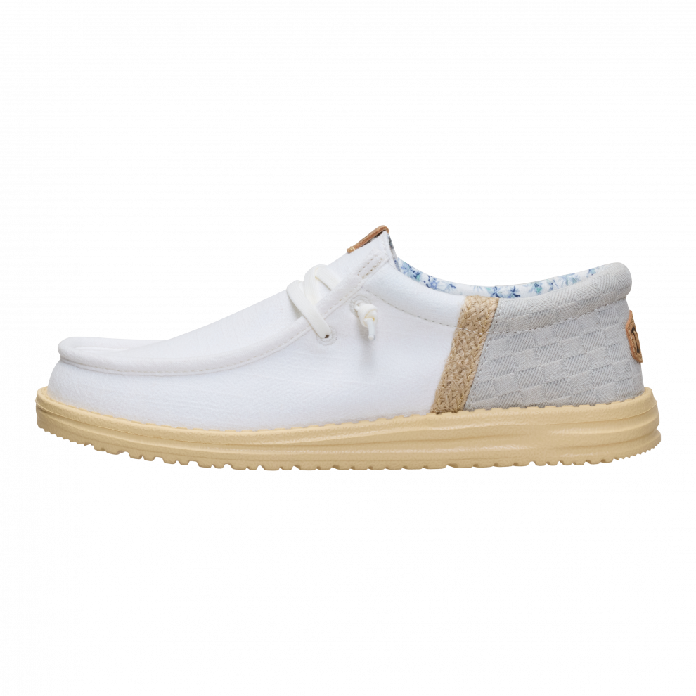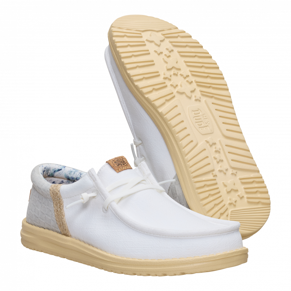 Každý letní den má vypadat jako na dovolené. Tyhle Wally jsou připraveny vyrazit od bazénového baru rovnou na hotelový balkón. A co třeba malý výlet? Stát se může cokoli. Stélka je z korku, takže nepotřebuješ ponožky. Přední část je ze lnu — jako tvé nejoblíbenější dovolenkové kalhoty.