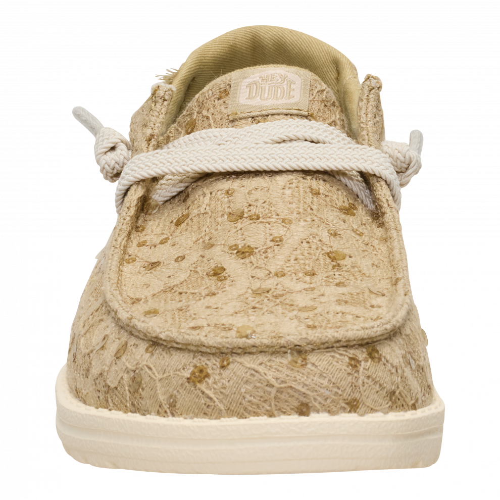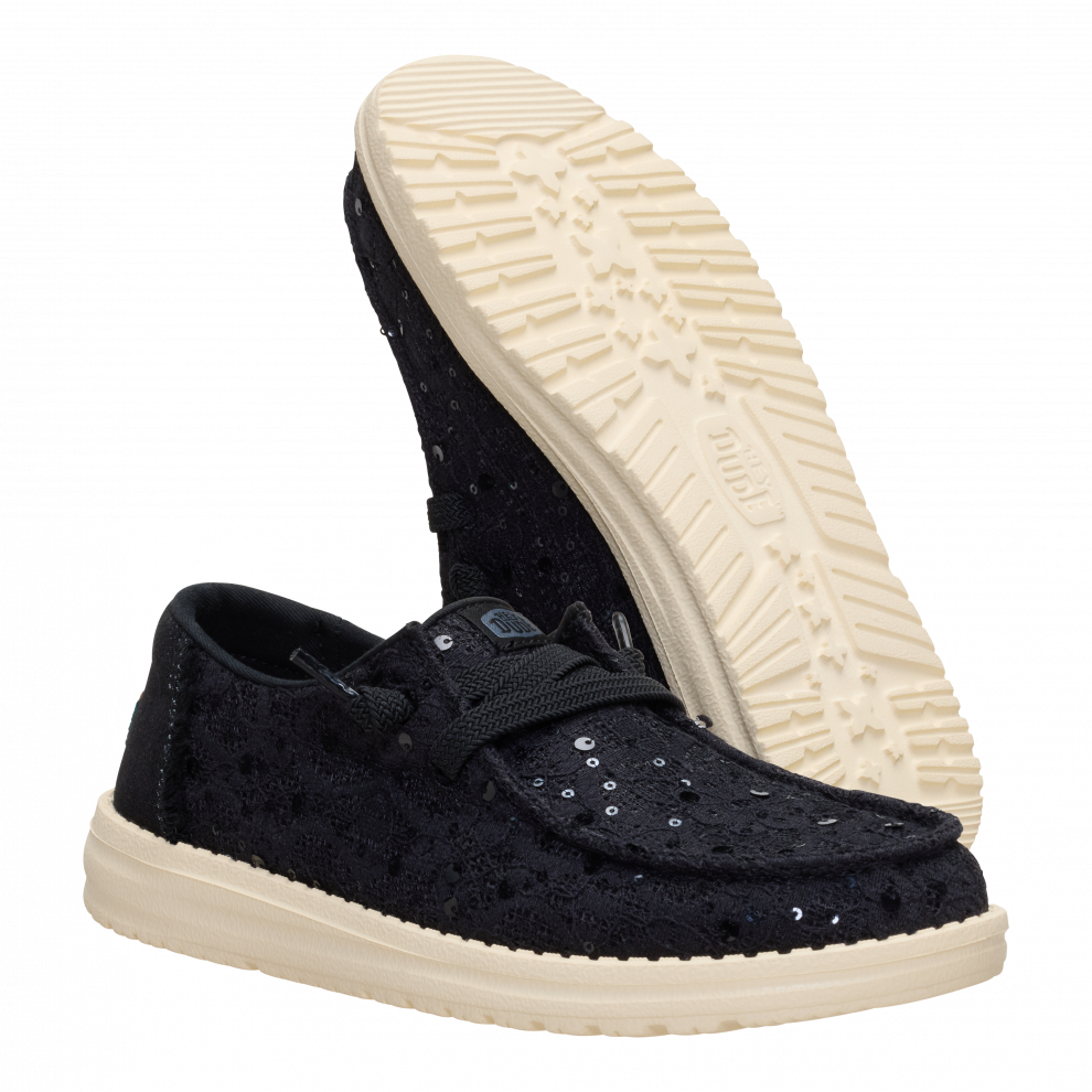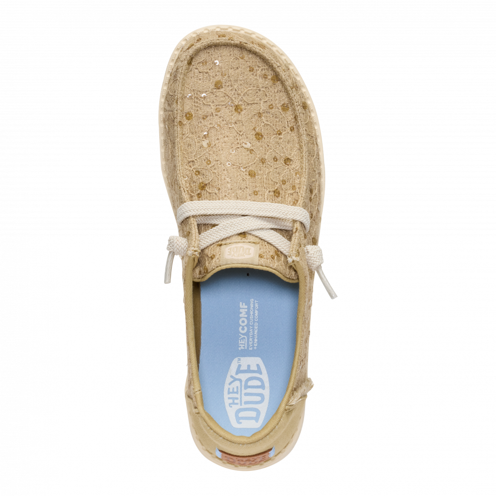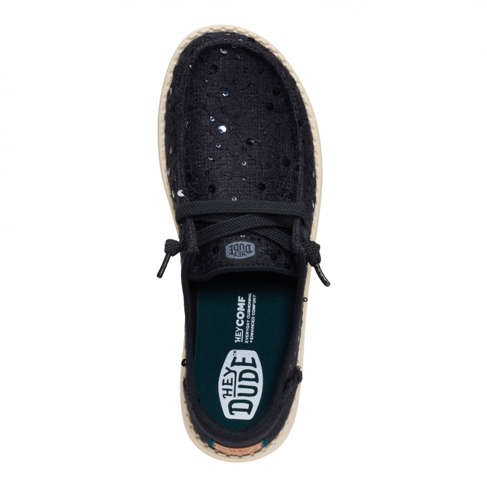 Wendy Sequin Lace je model, který v sobě spojuje to nejlepší z obou světů: legendární pohodlí značky HEYDUDE a nádech lesku, který se vždy hodí. Krajkový design s drobnými třpytivými detaily dodává botám ženský, svěží a lehce magický styl – ideální pro oživení jakéhokoli outfitu. Jsou lehké, pružné a tak pohodlné, že zapomenete, že je máte na nohou... dokud vám někdo neřekne, jak jsou krásné.